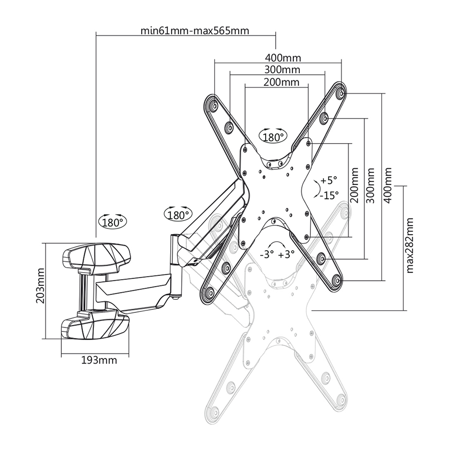 Extendable articulating TV mount 23" - 70"