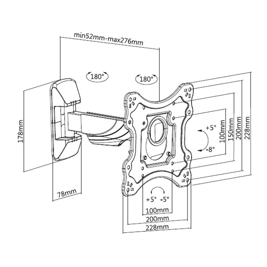 Extensible adjustable mount for TV 23" - 42"