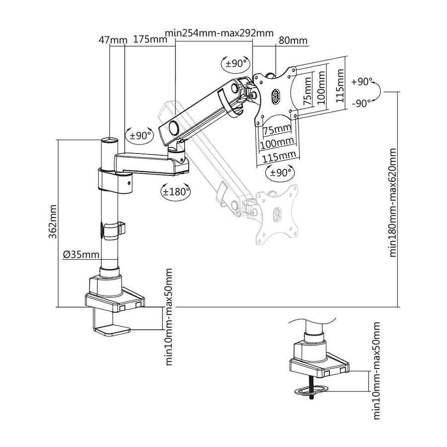Monitor desk mount single