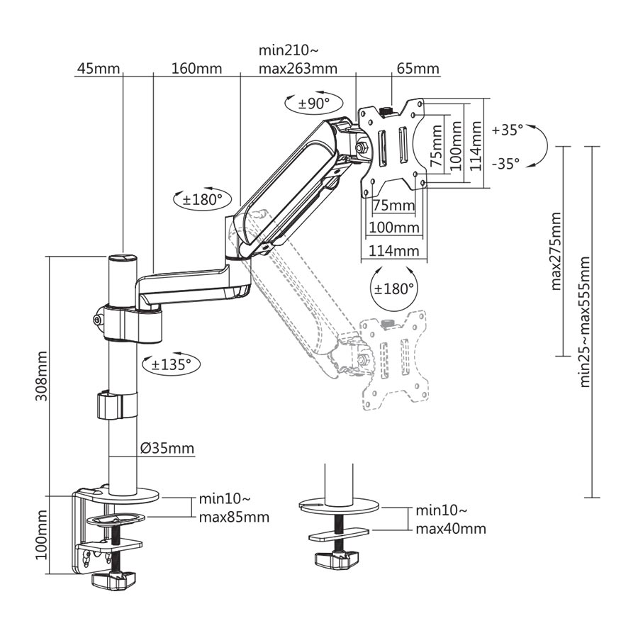 Monitor desk mount single